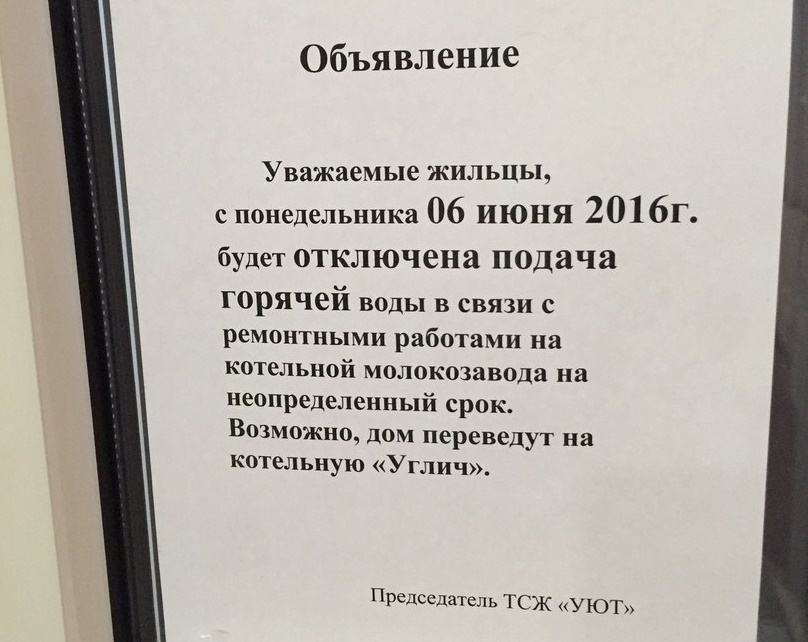 Объявление об отключении горячей воды.