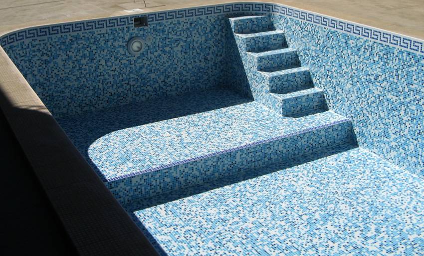 - Мозаичная отделка формирует и выступает в роли дополнительной гидроизоляции.