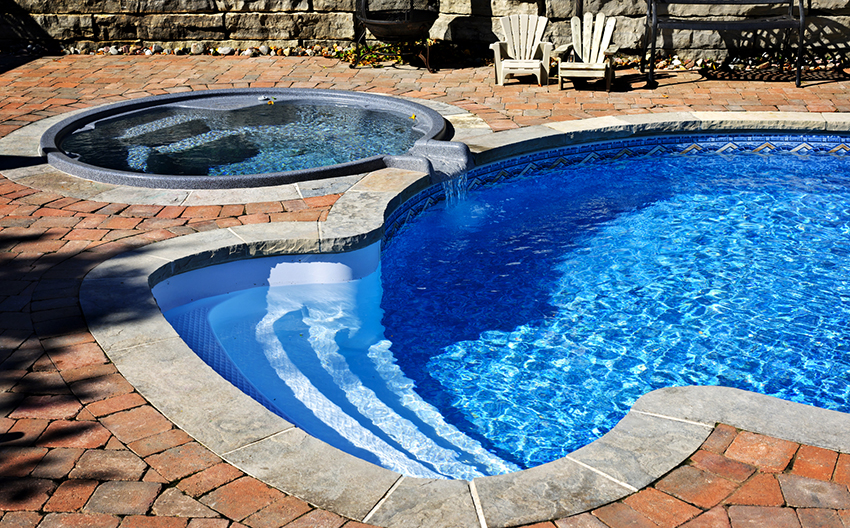 Другой вариант – это бассейны с бетонной чашей, которые считаются более доступными благодаря невысокой стоимости и относительной простоте изготовления. Основная проблема бетона – это отсутствие гидроизоляции и постепенное разрушение под действием воды. Чтобы не допустить этого, чашу следует изнутри покрыть каким-нибудь материалом, отталкивающим воду.