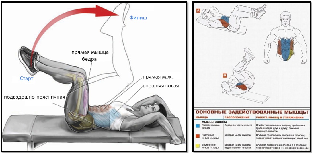 Упражнение на косые и нижнюю часть прямой мышцы живота.