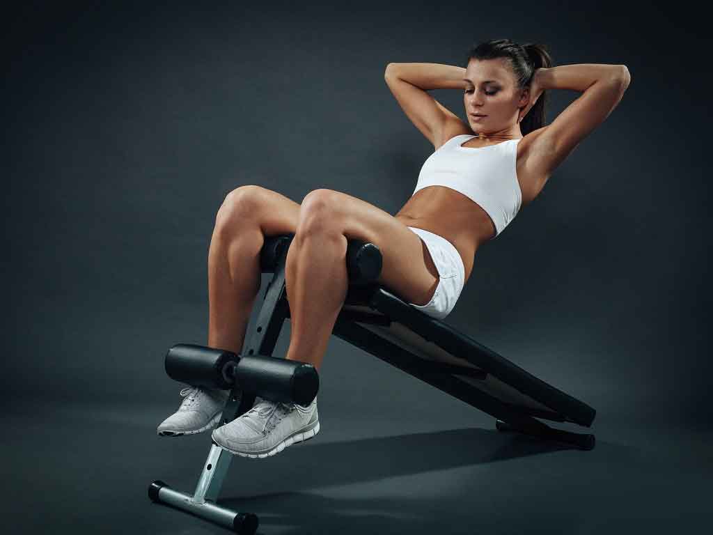 Чтобы усложнить задачу, упражнение выполняют на наклонной скамье – исходная позиция предполагает, что торс размещен выше таза. Новичкам рекомендуется выбирать скамьи с незначительным углом наклона, а по мере того, как мышцы пресса будут укрепляться, этот показатель можно увеличивать.