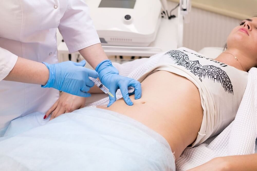 Процедура занимает не более 30 минут. Сначала врач определяет зону введения липолитика и обозначает ее на теле маркером. Перед введением инъекции кожу обрабатывают антисептиком.