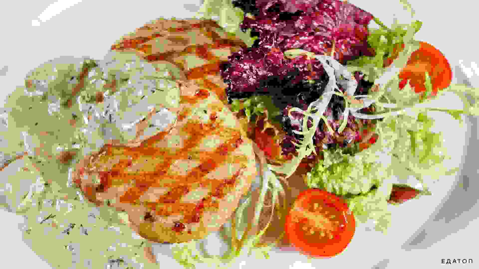 Фасолевый салат с куриной грудкой.