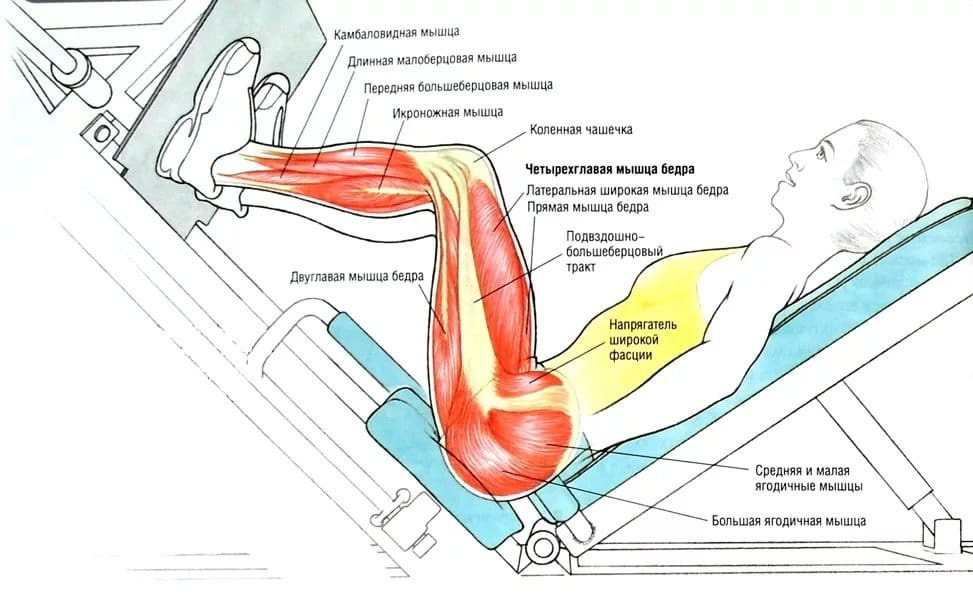 Рассмотрим, какие мышцы работают на тренажере дополнительно с квадрицепсом: