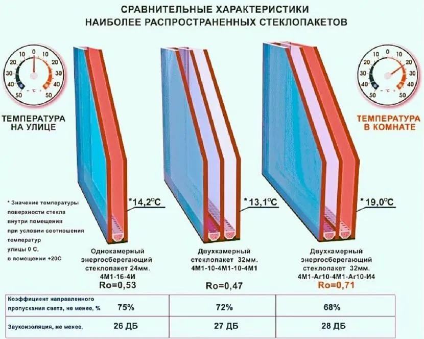 Камеры – свободное внутреннее пространство между стеклами, от количества которых зависят характеристики пакета. Однокамерные состоят из двух слоев прозрачного материала. Ширина компактной конструкции – до 30 мм. Из-за небольшого веса изделия можно использовать для лоджии большого размера. К недостаткам относят плохую тепло- и звукоизоляцию.