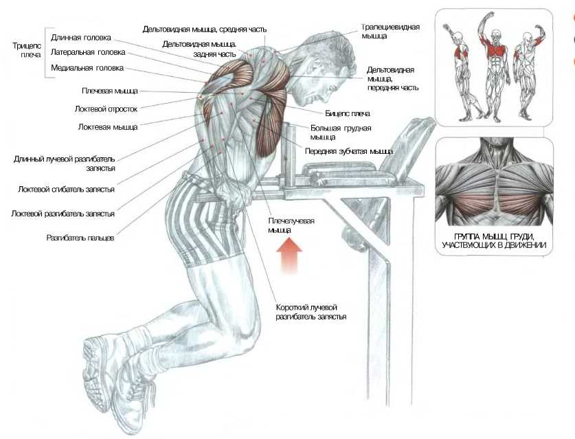 Что брусья дают. Какие мышцы работают при занятиях на брусьях