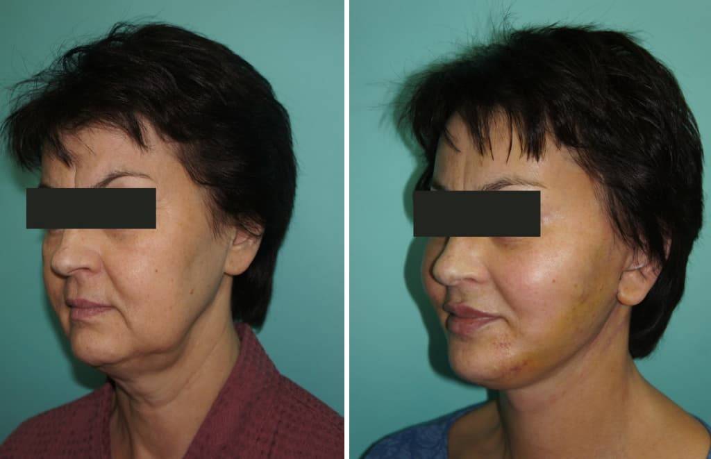 Такой метод устраняет возрастное обвисание кожи, делает лицо молодым и гармоничным. Разглаживаются глубокие складки и морщины, выравнивается овал по линии подбородка, формируется глубокий, ровный «угол молодости» между подбородком и шеей, уголки губ приподнимаются и выражение лица «плачущий Пьеро» исчезает.