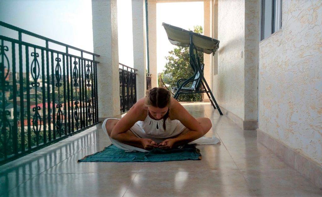 вытянитесь за макушкой вверх. В идеале спина должна быть прямой в течение