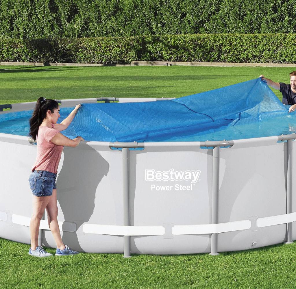 Солнечные крышки также известны как пузырьковые крышки из-за их конструкции из пузырьковой пленкой. Тонкий материал крышки пропускает солнечные лучи, а пузырьки воздуха помогают удерживать тепло в воде.