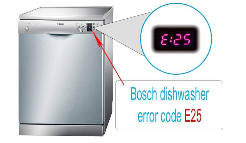 Код ошибки E25 информирует о засоре в помпе посудомойки