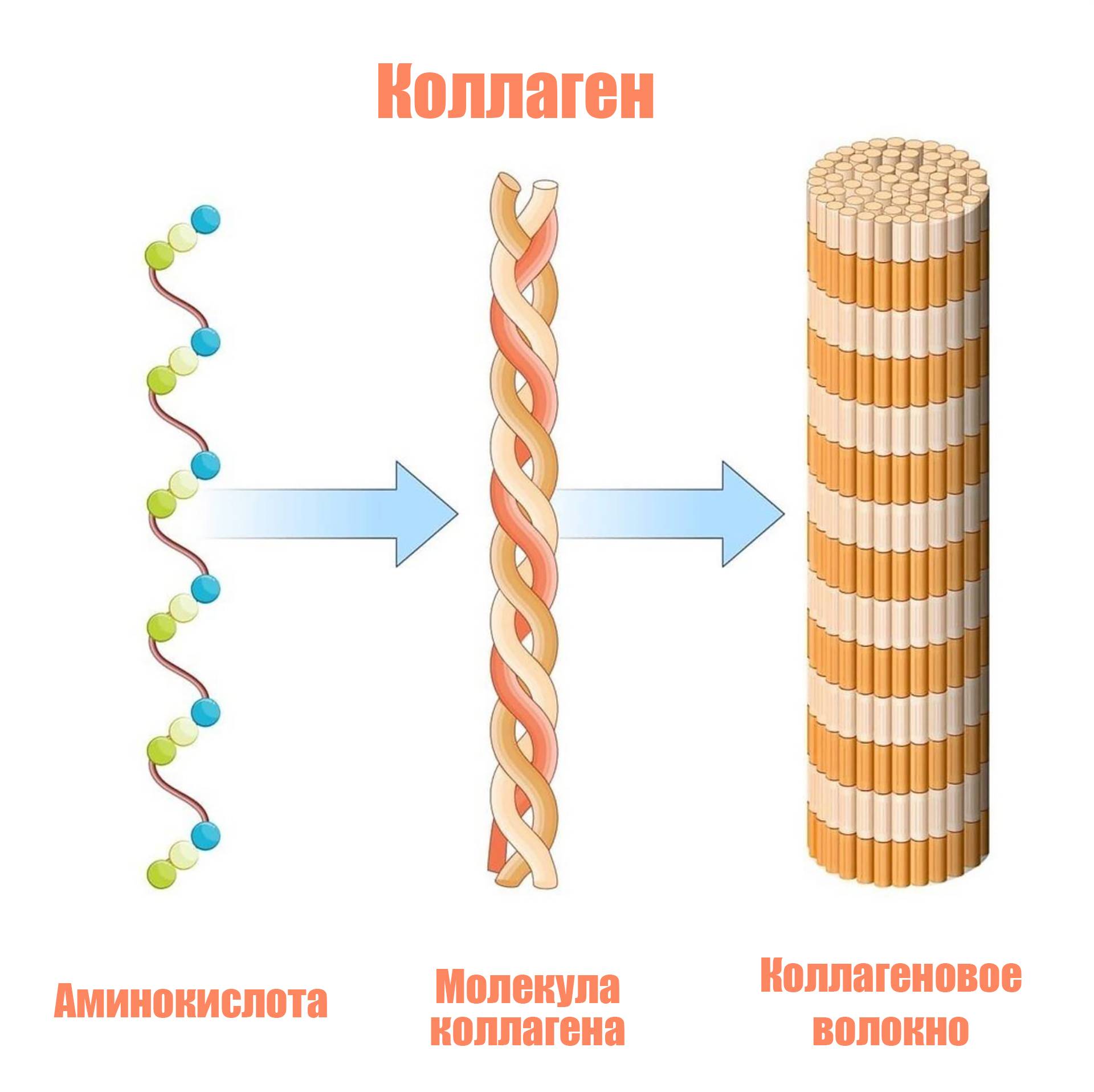 Коллаген – это фибриллярный белок (вытянутой нитевидной формы), который присутствует в различных тканях организма человека. Он отвечает за прочность тканей.