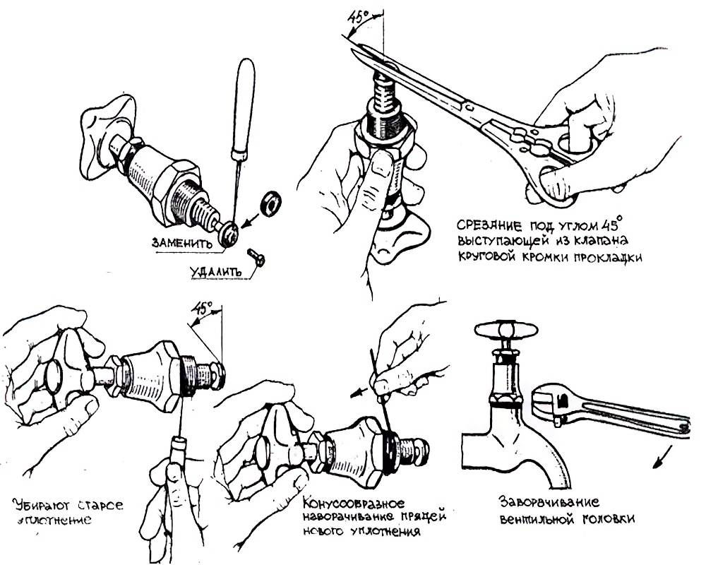 Водоразборные краны этого типа до сих пор используются, так как они просты и надежны, служат не годами, а десятилетиями. Если вся «начинка» надлежащего качества, все что за это время может выйти из строя — это прокладки. Их замена — это и есть основной способ починить вентильный кран.