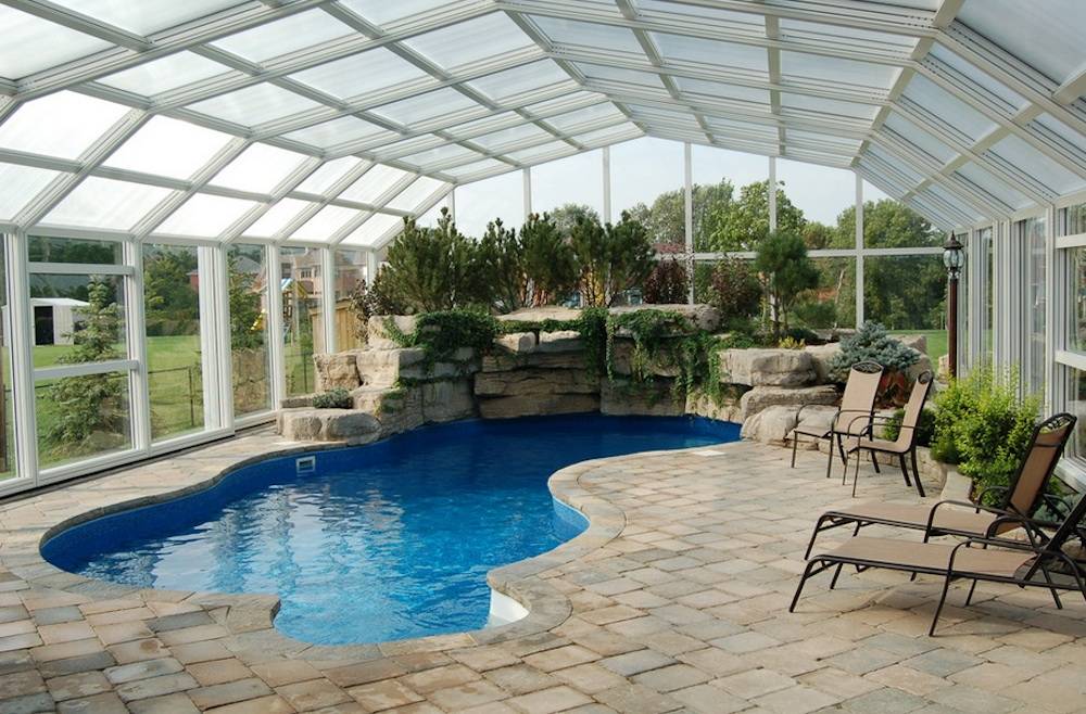 Желательно крышу бассейна сделать из устойчивых к морозу и перепадам температуры материалов – полипропилена. Более экономичный вариант – плоская крышка из нержавеющей стали. Просто покупаете лист нужного размера и периодически закрываете бассейн в летнее время – от мусора и постоянно – в межсезонье и зимой.