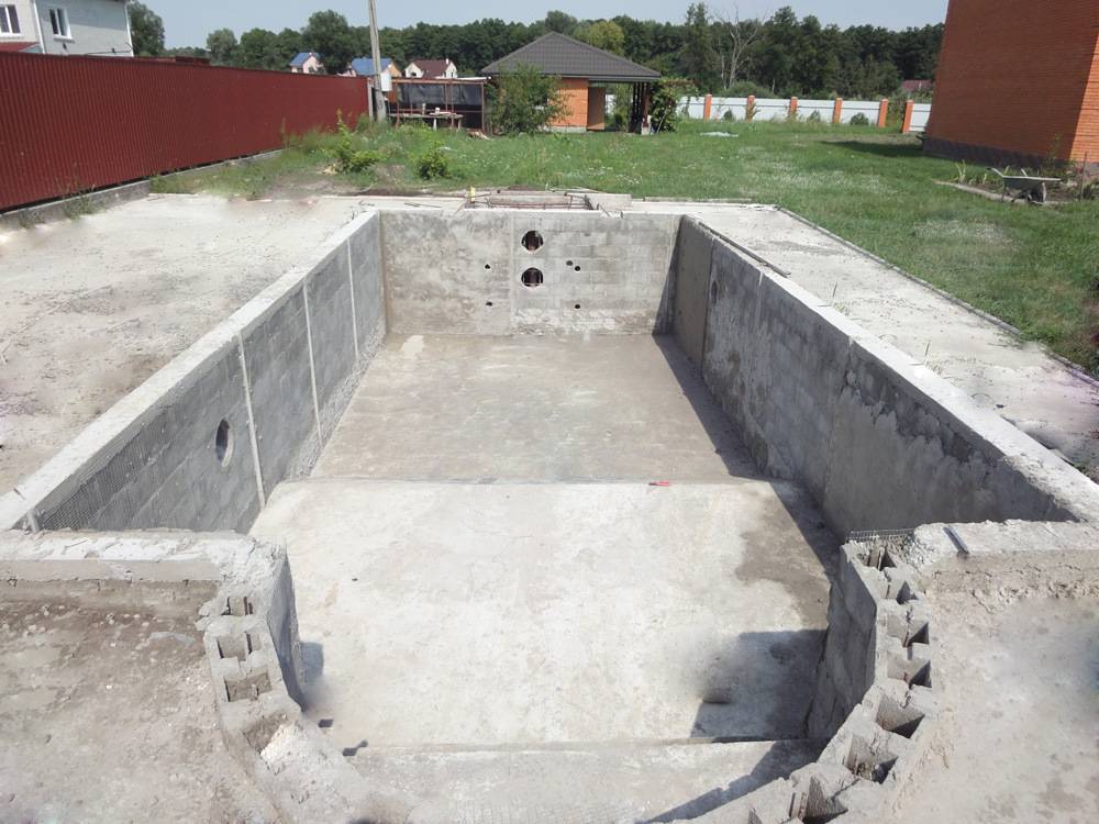 Когда дно бассейна высохнет, можно приступать к обработке и ремонту стен бетонной чаши: