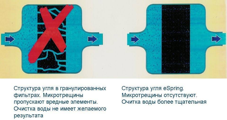 Запатентованная технология eSpring использует несколько этапов очистки. Жидкость проходит через следующие элементы: