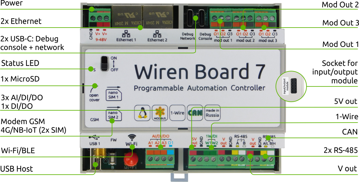 Универсального контроллера Wiren Board под управлением свободной ОС Debian Linux хватит для решения большинства типовых задач автоматизации.