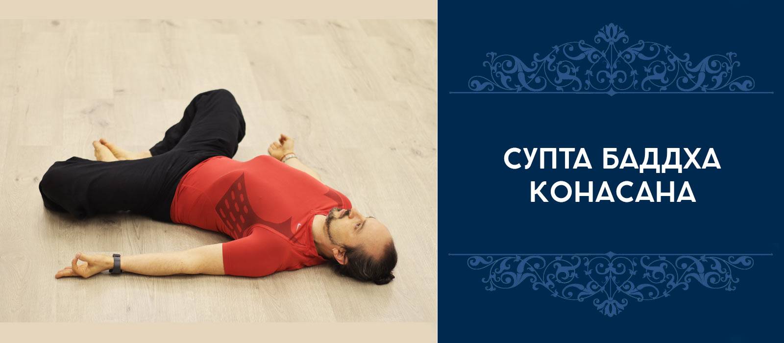 Супта Баддха Конасана позволяет «открыть» область груди, живота и таза. Она является одной из лучших асан, помогающих восстановить органы брюшной полости и тазового соединения (особенно – органы малого таза).