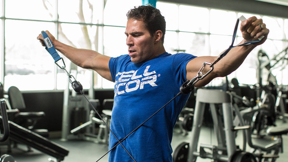 Капурсо следует протоколу Табата, чтобы усилить пампинг. Используйте вес, с которым можете сделать около 20 повторений. Выполняйте разведение гантелей периодами по 20 секунд с 10-секундными перерывами на отдых в течение 4 минут.
