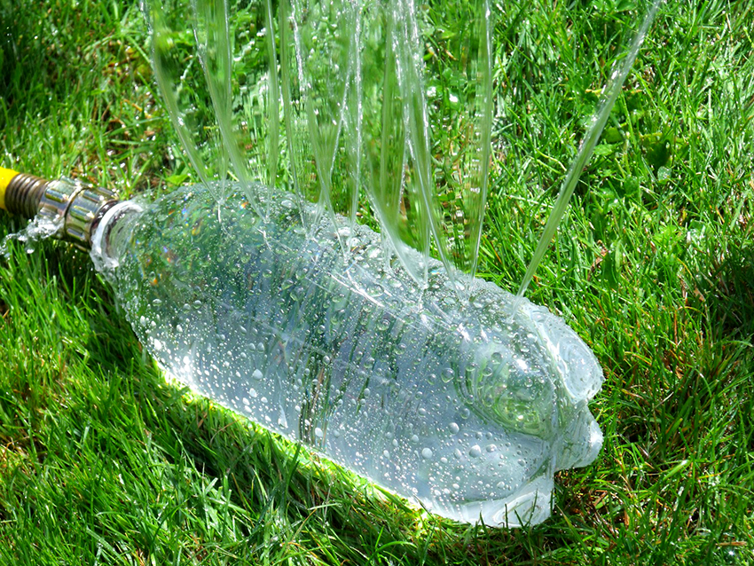 Для дождевателя понадобятся шланг, распылитель, насос и пластиковая бутылка