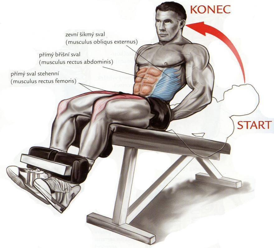 Важно хорошенько зафиксировать стопы. Если нет скамьи, можно воспользоваться любой наклонной поверхностью, закрепив её к шведской стенке. Ноги в этом случае цепляются за перекладины шведской стенки и их лучше согнуть немного в коленях, для того, чтобы не нагружать позвоночник