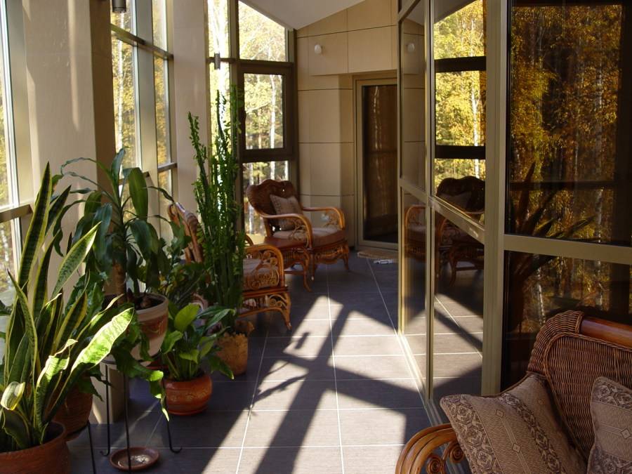 Буферный – это зимний сад, пристроенный к дому в виде застекленной террасы или веранды. Мини-вариант – тамбур или балкон.